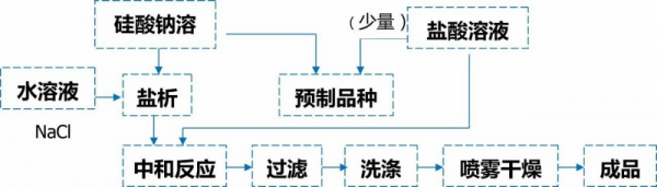 酸性(xìng)矽溶膠兩步法製高補強性白炭黑工藝流程簡圖