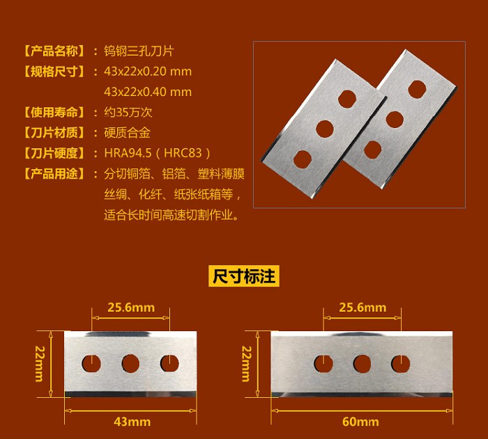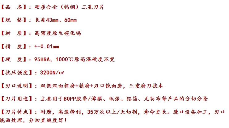 鎢合金三孔刀片,割薄膜刀片,破絲(sī)刀片